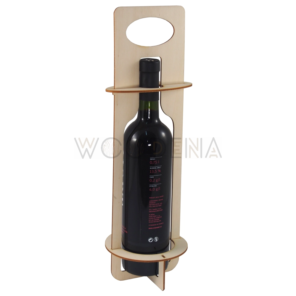 Krążki zabezpieczają stojak oraz butelkę z winem przed przewróceniem. Co więcej, stojak na wino posiada wyciętą rączkę, która umożliwia wygodne przenoszenie wina w drewnianym stojaku..