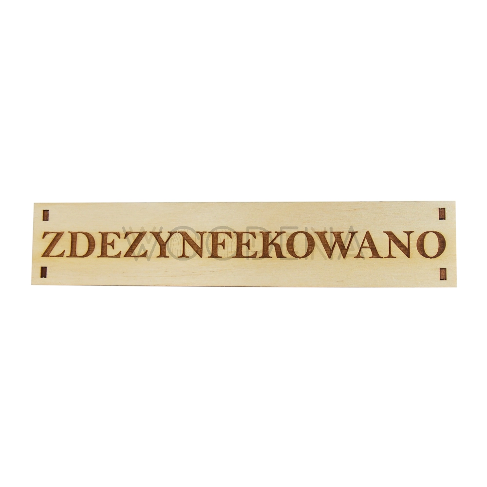 Drewniana tabliczka z napisem „Zdezynfekowano"
