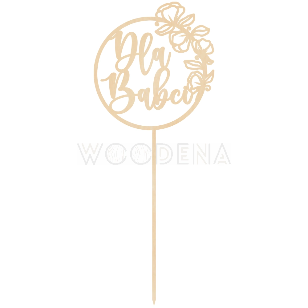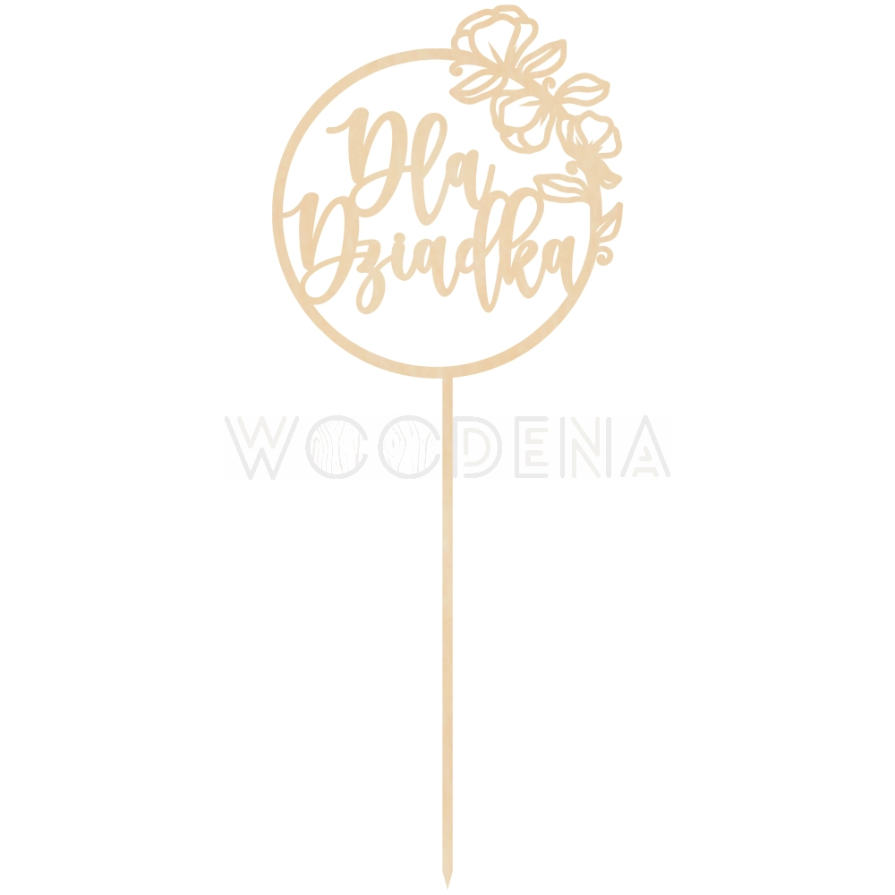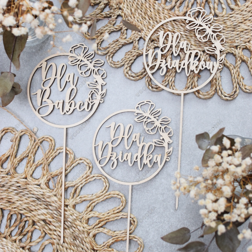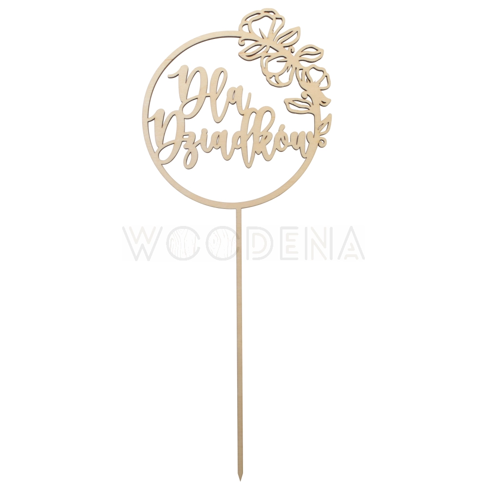 Topper ten to napis zawarty w dekoracyjnym kole z piękną grafiką. Wszystko to wykonane zostało ze sklejki brzozowej i może być świetnym dodatkiem do prezentu w Dniu Babci i Dziadka.