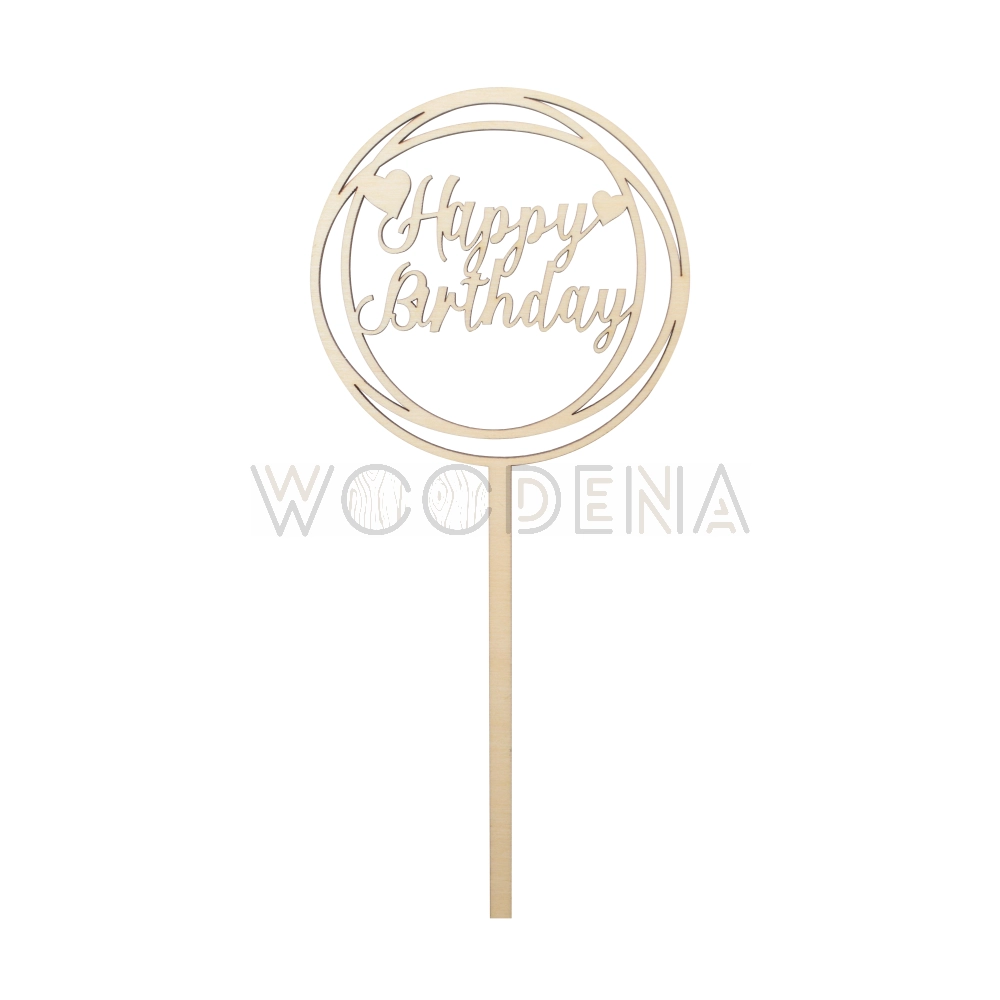 Drewniany Topper na tort z napisem „Happy Birthday”
