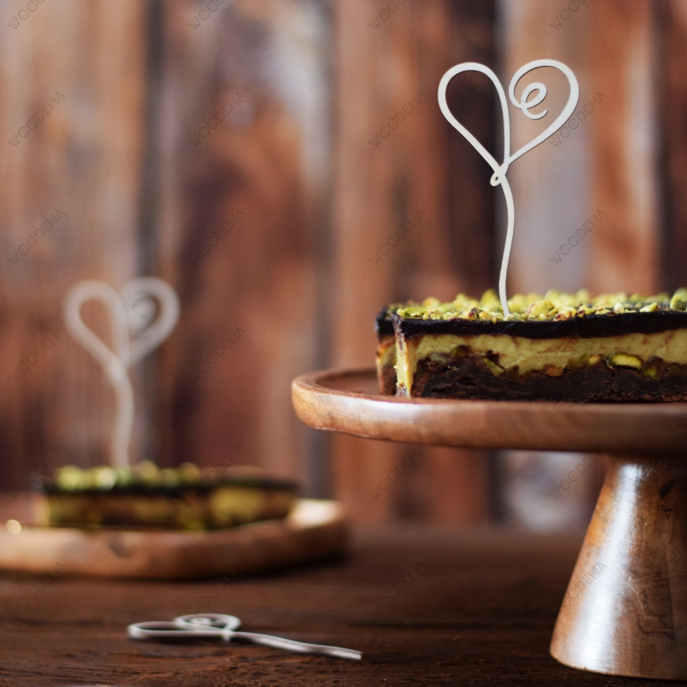 Ta drewniana ozdoba w postaci serca linearnego wygląda pięknie sama w sobie. Nie wymaga dodatkowej dekoracji. Jednakże, jeśli mimo to chcecie ozdobić topper to używając tylko produktów, które mogą mieć kontakt z żywnością.