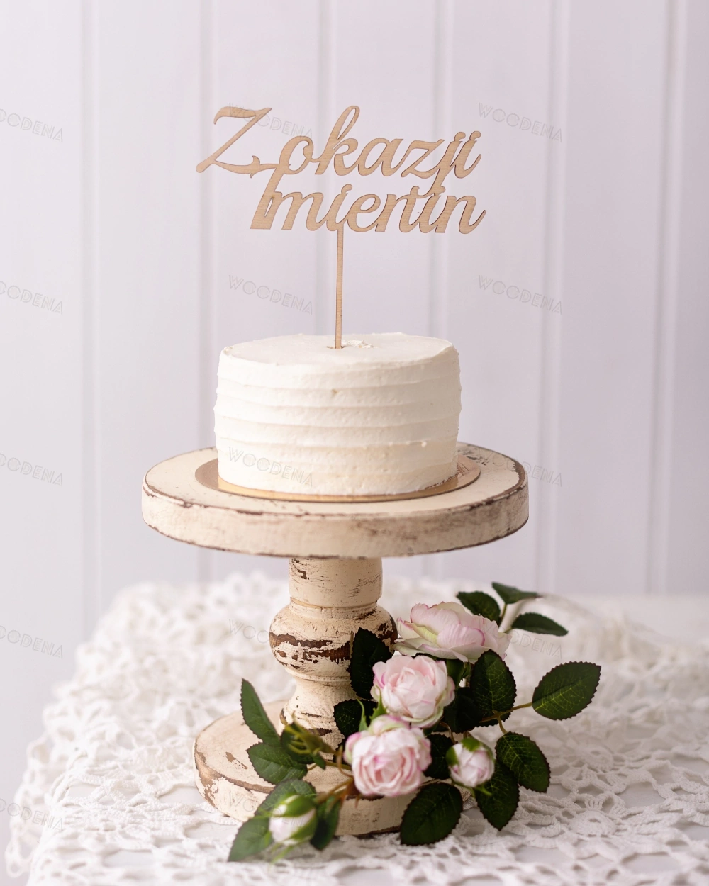 Drewniany Topper na tort imieninowy “Z okazji imienin”