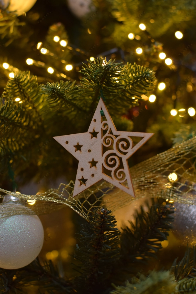 Wszystkie dekoracje bożonarodzeniowe Woodena, zostały wykonane z wyselekcjonowanych materiałów. Do produkcji zawieszki w postaci gwiazdki wykorzystano sklejkę brzozową, która jest przyjazna środowisku i odporna na uszkodzenia. Dodatkowo kształt gwiazdki został wycięty laserowo, dzięki czemu produkt posiada równą powierzchnię. To sprawia, że drewniana zawieszka może być malowana na dowolny kolor lub dekorowana technikami: