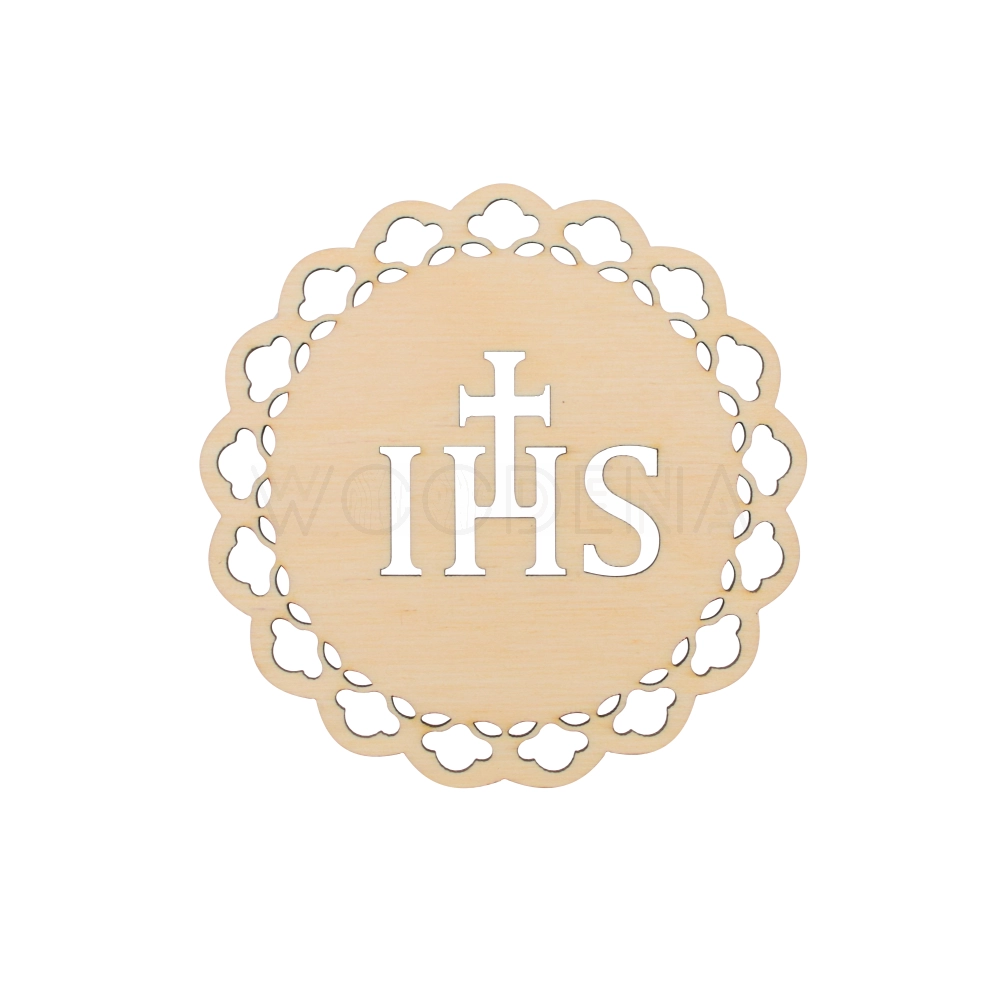 Drewniana dekoracja komunijna - hostia IHS to wyjątkowa ozdoba komunijna, która może mieć wiele zastosowań. Sprawdzi się jako: