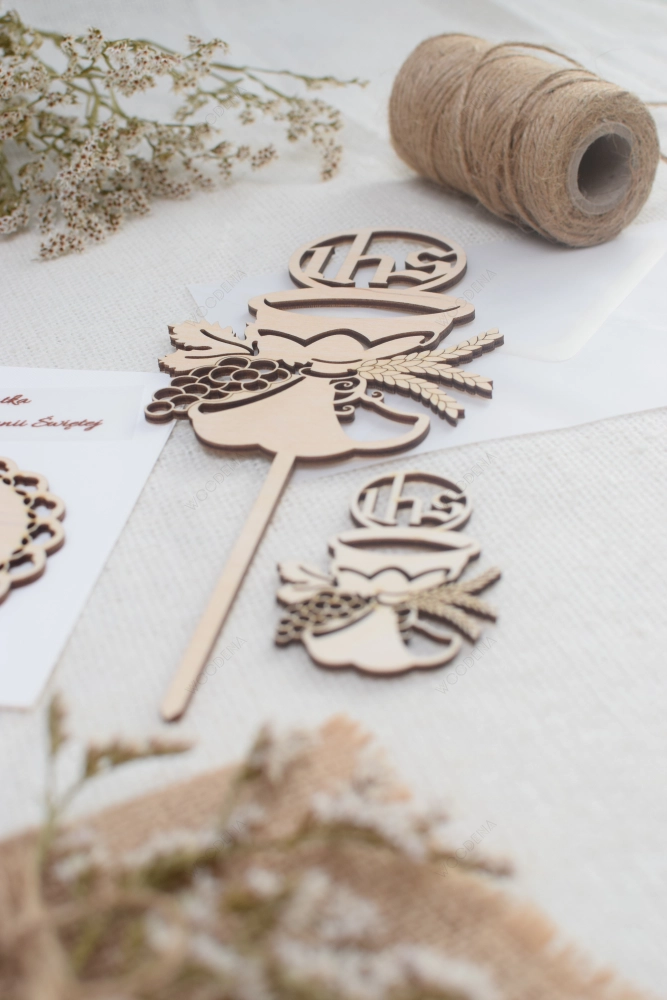 Drewniany topper na tort komunijny ze sklejki sprawdzi się jako