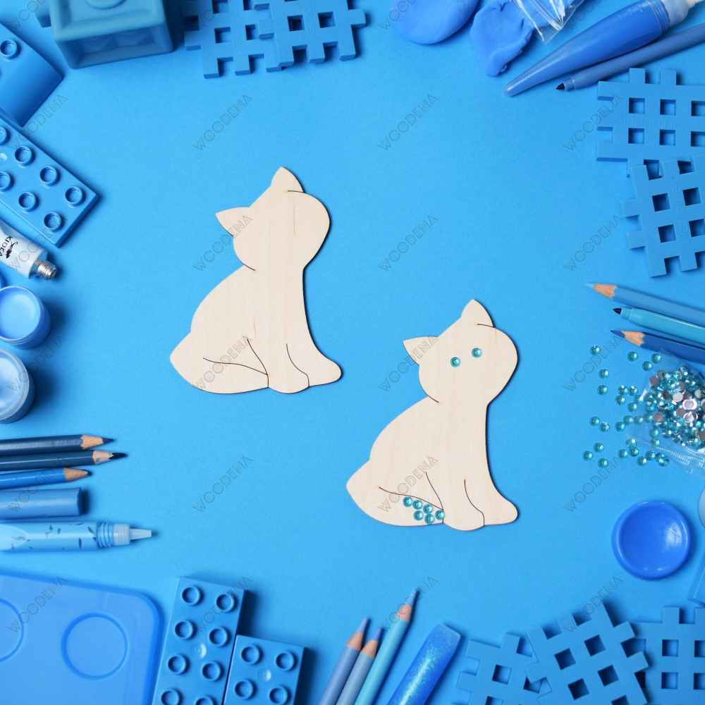 Drewniana podstawka w kształcie kotka to urocza dekoracja, która świetnie sprawdzi się do dziecięcego pokoju. Prosty kształt kotka został wycięty z użyciem lasera, co sprawia, że wycinanka ma gładką powierzchnię i krawędzie, dlatego może być dekorowana przez najmłodszych. Drewniany kotek sprawdzi się jako element do ozdabiania w trakcie zajęć artystycznych w szkołach.