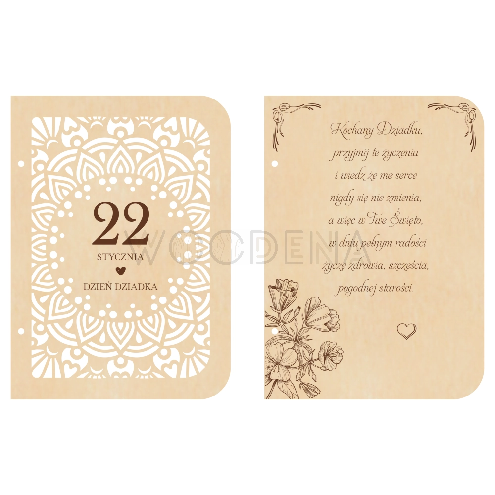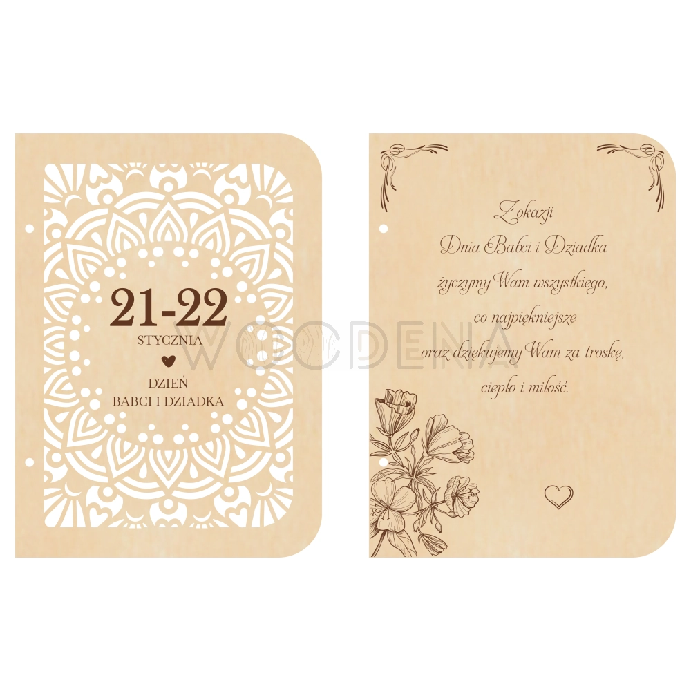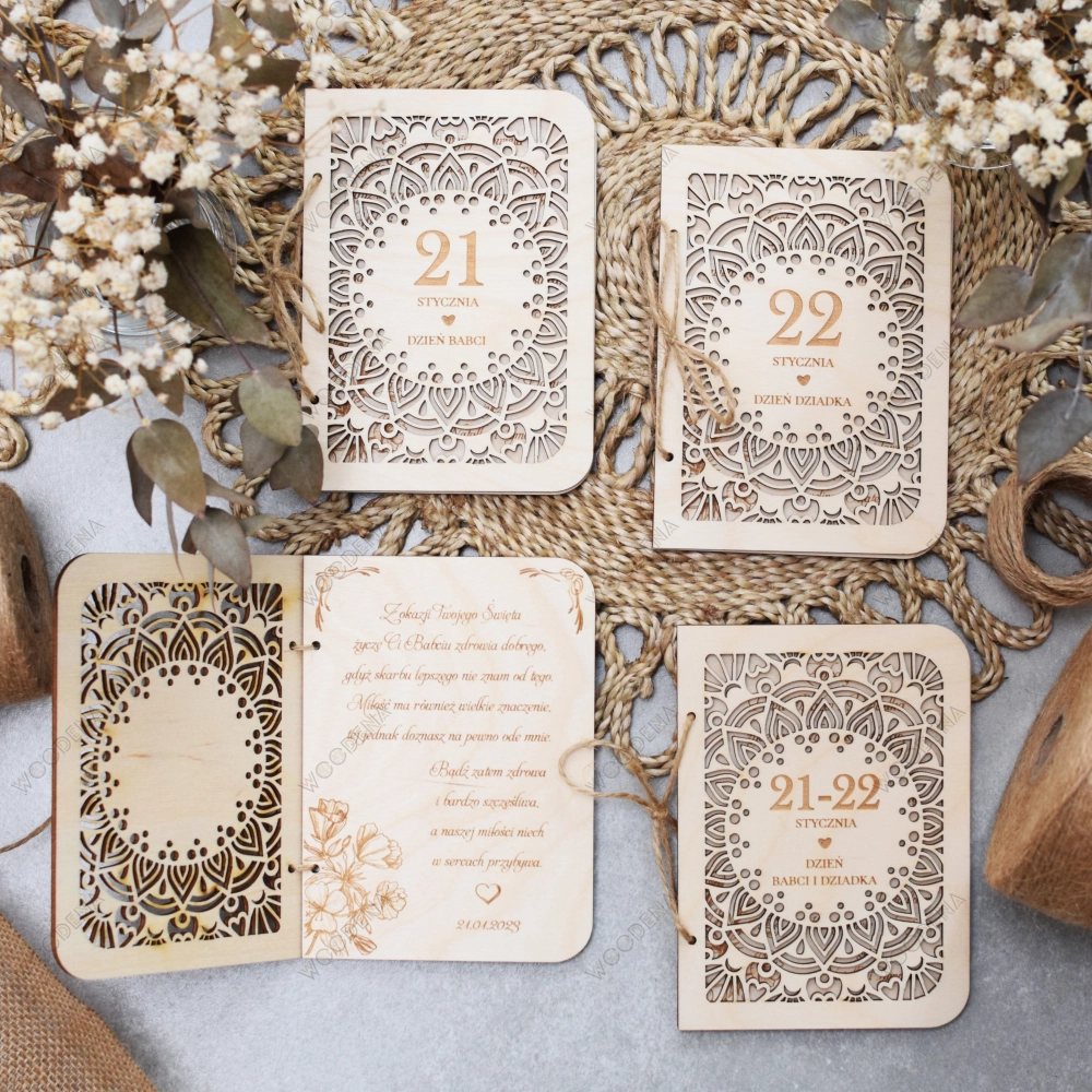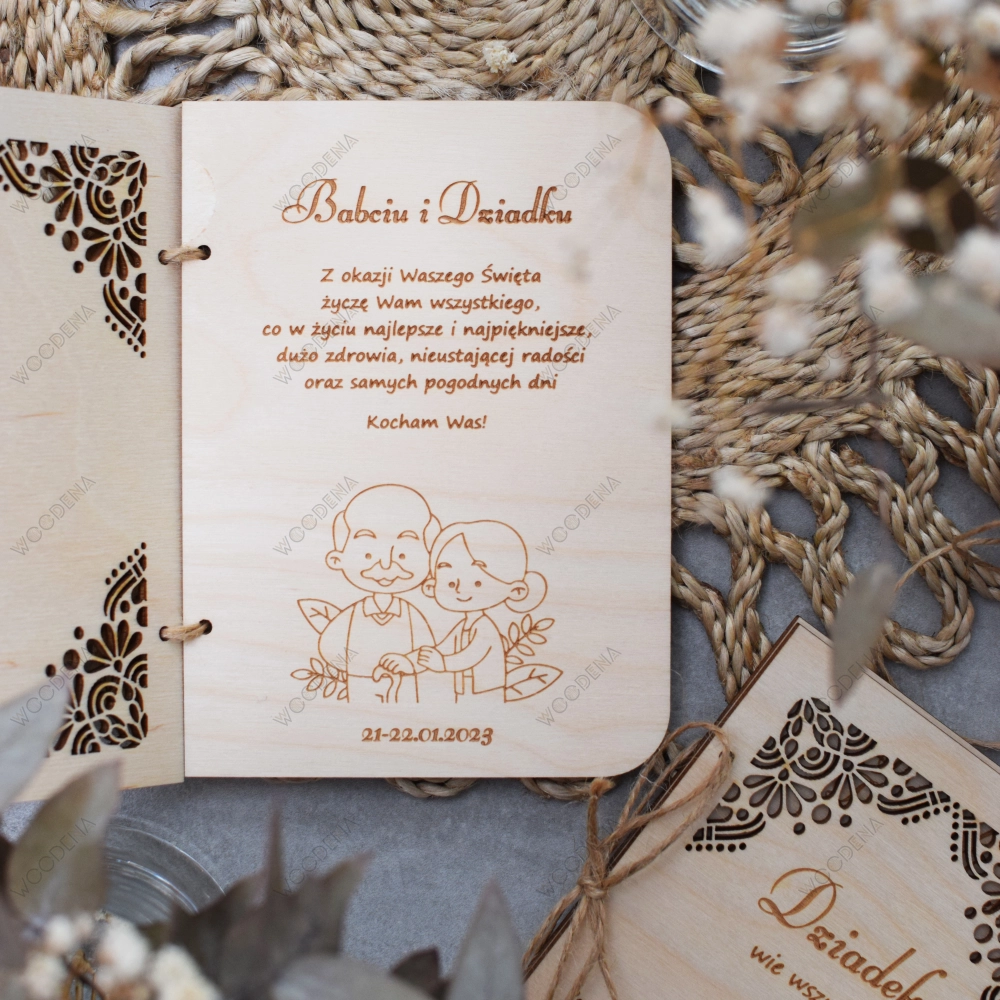 Jeśli szukacie oryginalnego pomysłu na Dzień Babci i Dziadka, to może być to laurka. Jednak nie jest to taka zwykła laurka, lecz kartka z życzeniami na Dzień Babci i Dziadka wykonana z drewna, a konkretnie ze sklejki brzozowej.