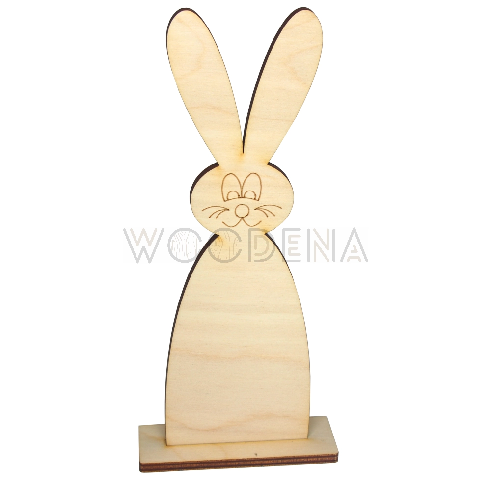 Drewniany zajączek wielkanocny na podstawce został wykonany z gładkiej sklejki. W związku z tym można go malować i dekorować różnymi technikami np. decoupage, mix media, quilling lub pomalować farbkami. Drewniany zając wielkanocny na podstawce polecany jest jako baza do malowania dla dzieci, w trakcie zajęć w szkole i przedszkolu.