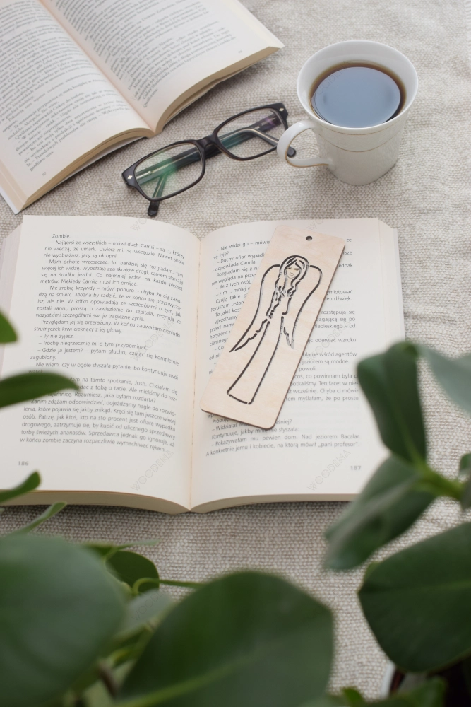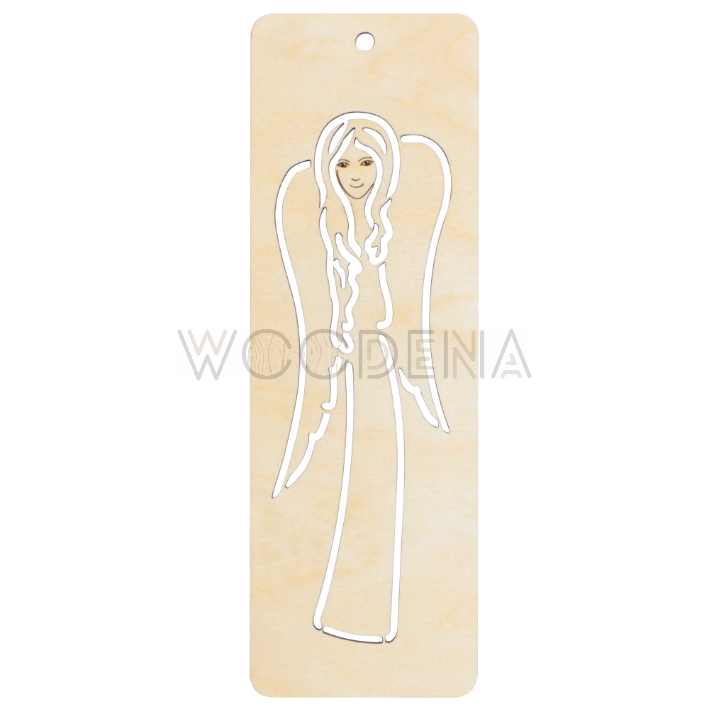 Zakładka drewniana ze sklejki brzozowej, którą tutaj prezentujemy, przedstawia pięknego anioła, który jest wycięty na cienkiej sklejce w kształcie prostokąta. Taka zakładka to idealny upominek, aby dołączyć go do prezentu komunijnego, ślubnego, czy też z okazji chrztu na pamiątkę.