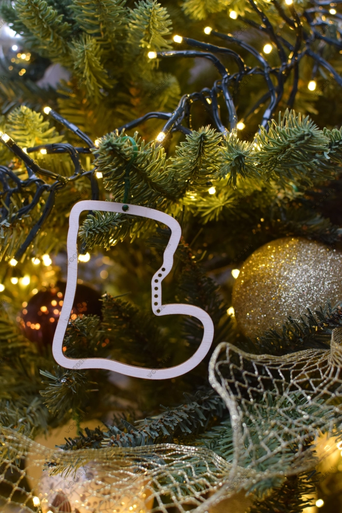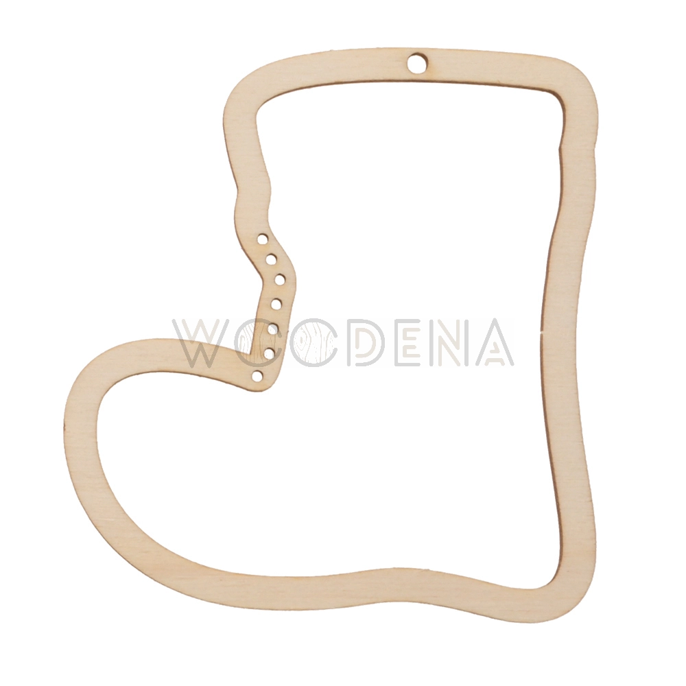 Drewniana ozdoba na choinkę w postaci buta Mikołaja została wykonana ze sklejki brzozowej. Drewniana zawieszka może zdobić choinkę w trakcie Świąt Bożego Narodzenia. W dodatku możesz zawiesić ją jako ozdobę ze sklejki na oknie, drzwiach, czy furtce wejściowej.