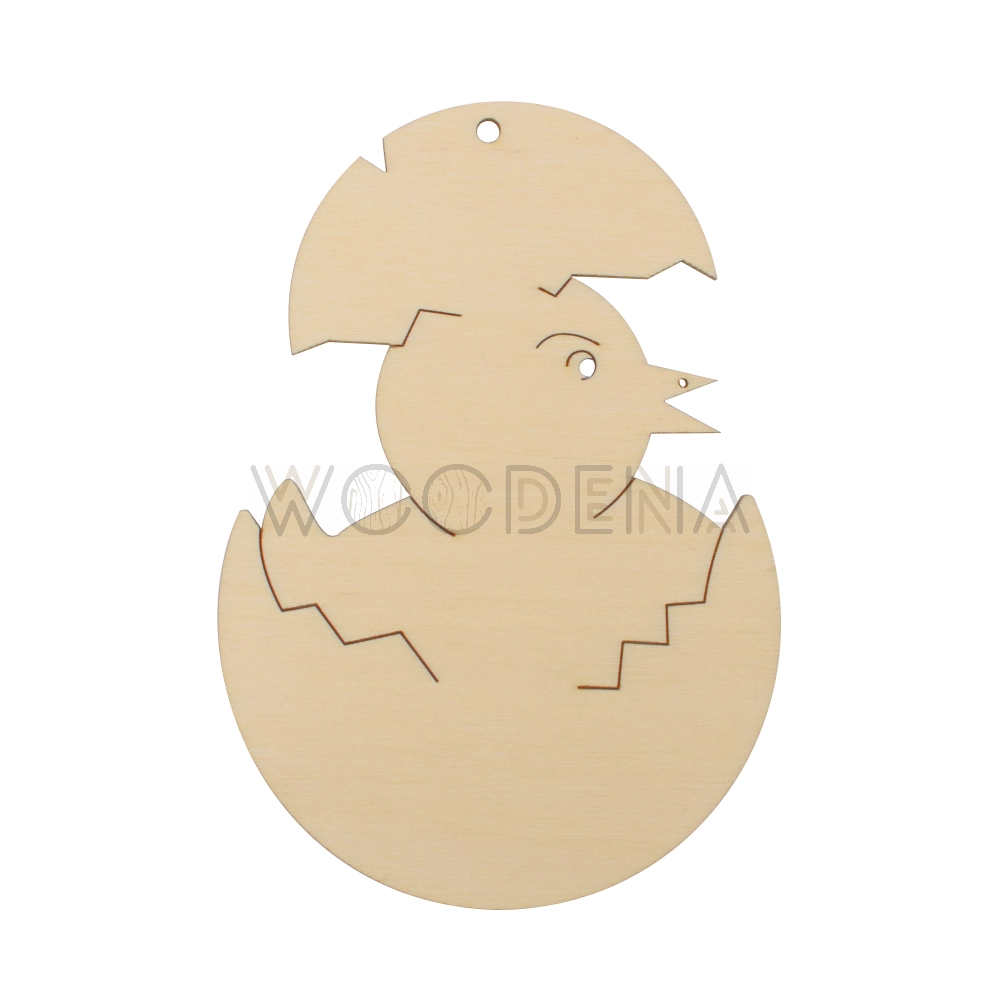 Kurczak wielkanocny z drewna został wykonany ze sklejki brzozowej, a kształt wycięto specjalistycznym laserem. To sprawia, że produkt posiada gładką powierzchnię. Do wykonania zawieszki wykorzystano uroczy wzór w postaci kurczaczka wielkanocnego wychodzącego z pękniętej skorupki.