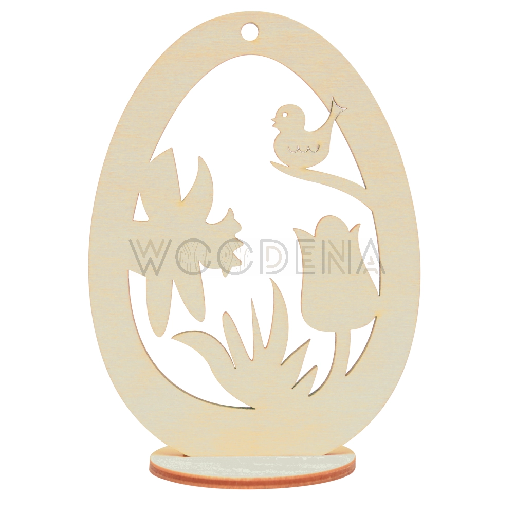 Zawieszka prezentowana tutaj to wielkie jajo, pośród którego zobaczymy kształty kwiatów, a nawet ptaszka. Ozdoba ta kojarzy się zarówno wiosennie jak i Wielkanocnie. Gdyby tak, kilka takich zawieszek pomalować farbami na ulubione kolory, następnie je polakierować a po wyschnięciu ustawiać wzdłuż parapetu, to stworzylibyśmy przepiękną sztuczną wielkanocną rabatkę!