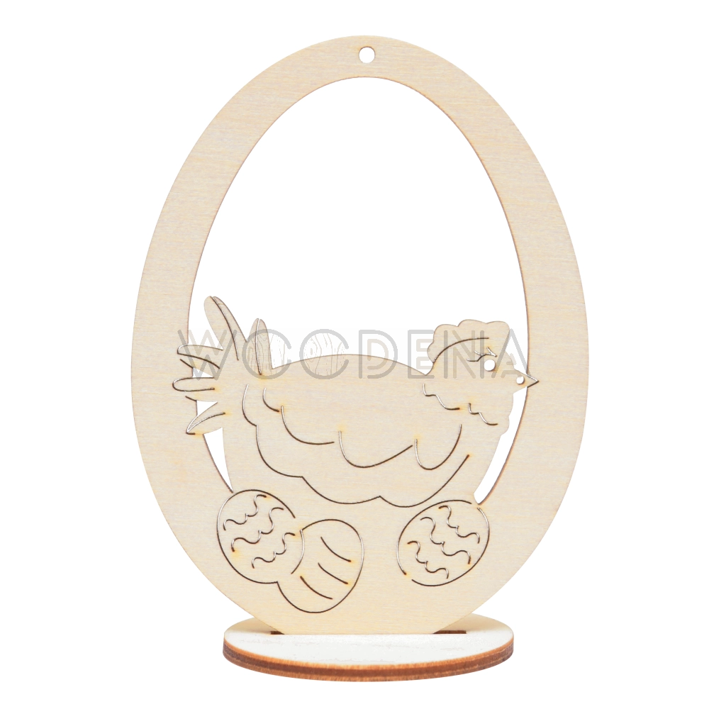 Zawieszka wielkanocna jajko - kwoka na podstawce ze sklejki brzozowej