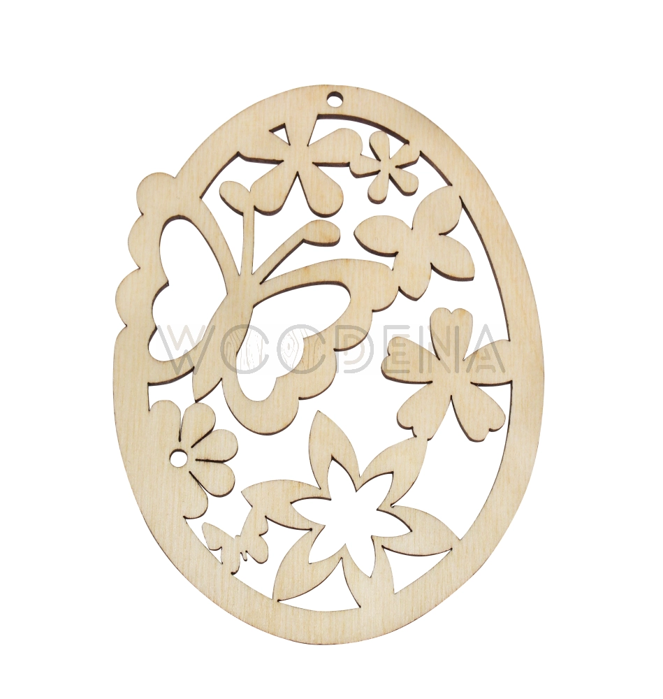 Drewniana zawieszka wielkanocna pisanka z motylkami to unikalny element dekoracyjny w trakcie Świąt Wielkanocnych. Może dekorować wnętrze w swojej surowej postaci, jak również posłużyć, jako drewniana zawieszka wielkanocna do malowania. Posiada dziurkę, która umożliwia zawieszenie produktu Woodena na szybie, ścianie, drzwiach, czy furtce.