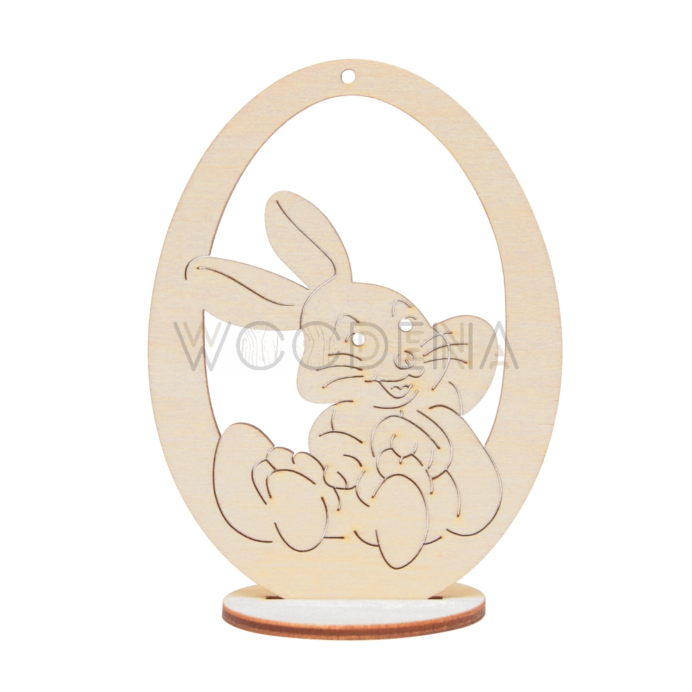 Drewniany zając w jajku z podstawką zawieszka to ozdoba 2 w 1, która może posłużyć jako zawieszka na okno lub drzwi. Oprócz tego, dzięki okrągłej podstawce, zając ze sklejki nada się jako ozdoba do postawienia na stół czy komodę. Ta dekoracja wielkanocna z drewna stworzona jest z naturalnego materiału. Polecana do ozdabiania techniką decoupage. Produkt w naturalnej formie doskonale pasuje do wnętrz: