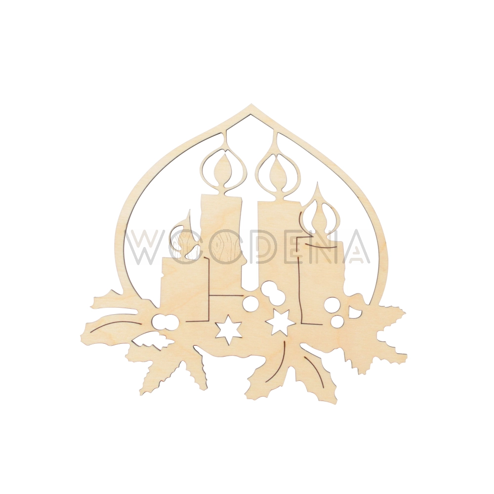 Zawieszka ze świeczkami została wykonana ze sklejki brzozowej. Powierzchnia bombki jest przystosowana do malowania i zdobienia. Przedmiot Woodena można wykorzystać jako bombkę drewnianą do decoupage. Oprócz tego powierzchnię ozdoby można malować farbami na wybrany przez siebie kolor.
